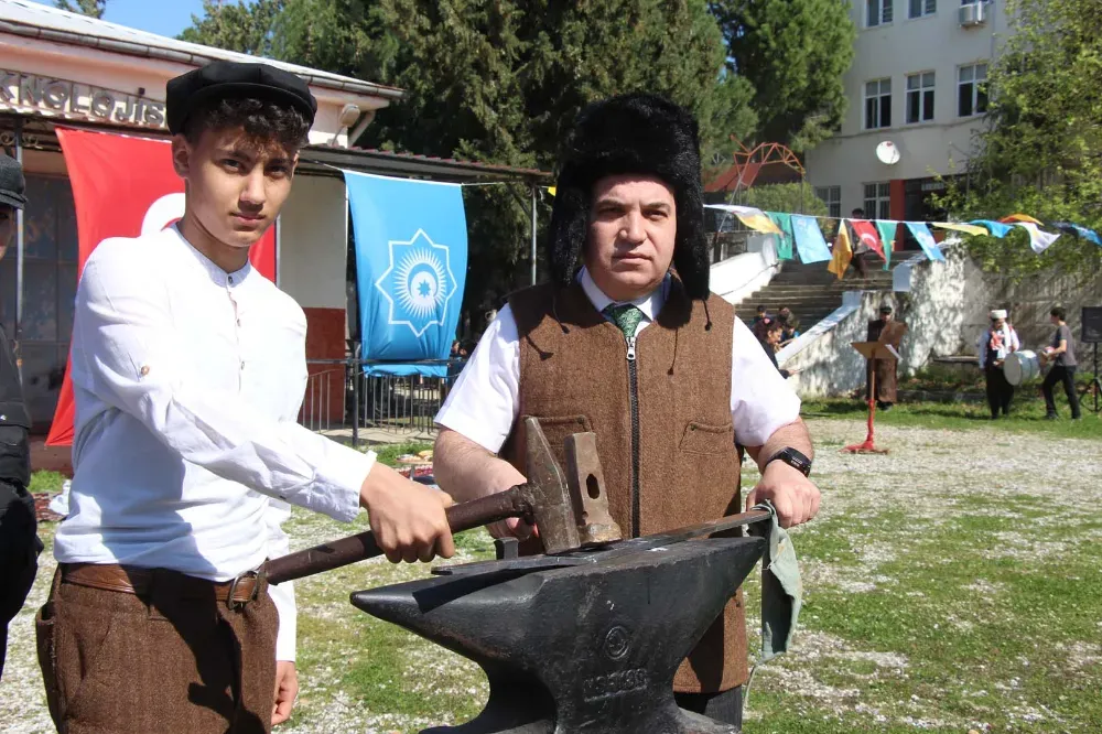 Programın en dikkat çekici ve duygusal anlarından biri, Türklerin Ergenekon’dan çıkışını simgeleyen demir dövme seremonisi oldu. Türk milletinin 6 bin yıl önce 400 yıl süren esaretin ardından dağları eriterek özgürlüğe kavuşmasını temsil eden bu gelenek, Kaymakam Kemal Duru ve protokol üyeleri tarafından örste çekiç vurularak canlandırıldı. Bu anlar, katılımcılar tarafından büyük alkış topladı.