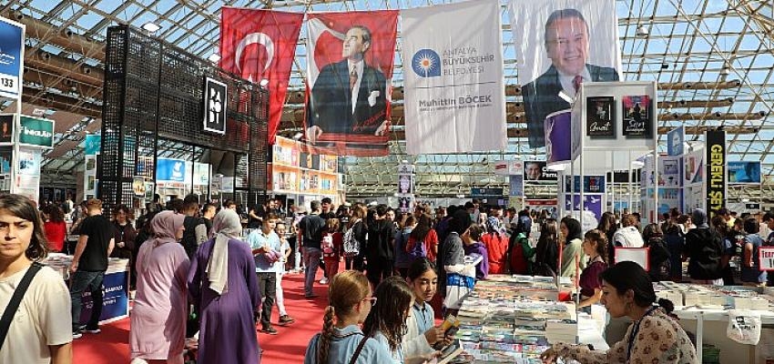 Antalya Büyükşehir Belediyesi ev sahipliğinde Cam Piramit’te gerçekleşen Antalya Kitap Fuarı, Antalyalıların yoğun ilgisiyle devam ediyor. 215 yazar ve 220 ulusal ve uluslararası yayınevinin katılımıyla düzenlenen 12. Antalya Kitap Fuarı yedinci gününde de etkinliklerle geçti.