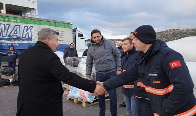 Çeşme’den yola çıkan, depremden etkilenen illere yardım malzemeleri ve iş malzemeleri, yakıt tankerleri, konteyner, gıda ve sağlık malzemelerini taşıyan ULUSOY5 Ro-Ro Gemisi İskenderun Limak Limanı’na ulaştı.