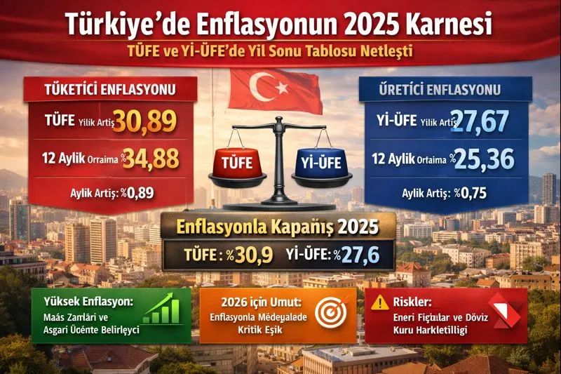 Türkiye İstatistik Kurumu (TÜİK), ekonomi çevreleri ve milyonlarca vatandaşın merakla beklediği Aralık 2025 dönemi enflasyon verilerini kamuoyuna duyurdu. Açıklanan rakamlar, 2025 yılının hem tüketiciler hem de üreticiler için nasıl bir seyir izlediğini gözler önüne seriyor.