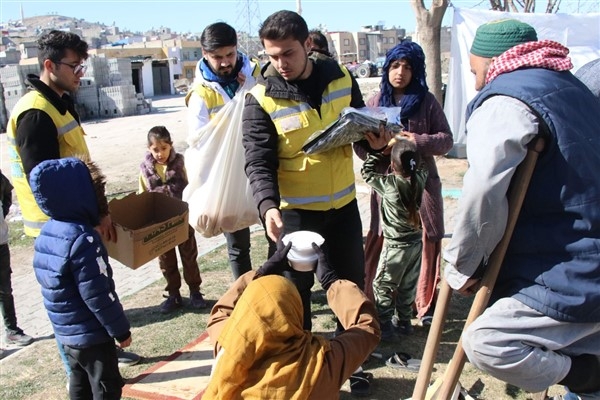 Ekipler, tüm öğünlerde ilçedeki güvenli bölgelerde bulunan vatandaşlara yemek ve içecek dağıtımında bulunuyor.