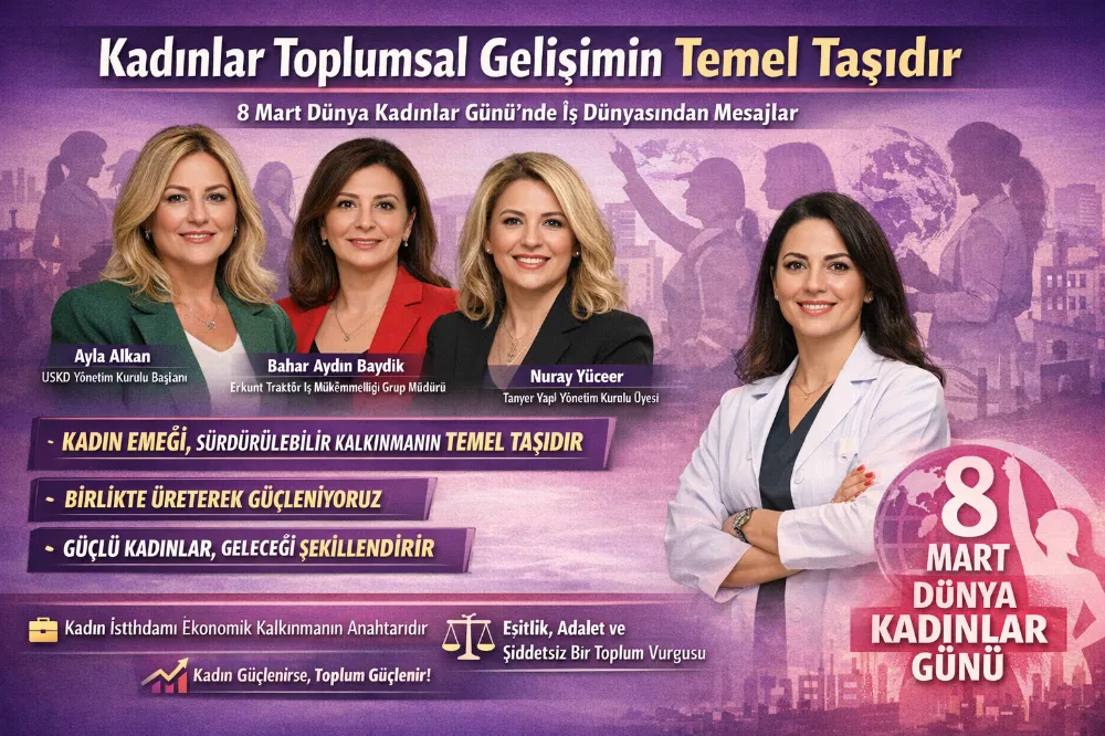MHA - İş dünyası, sağlık sektörü, 8 Mart Dünya Kadınlar Günü dolayısıyla sanat ve sivil toplumdan birçok kadın temsilci önemli mesajlar verdi. Yapılan açıklamalarda 8 Mart’ın yalnızca bir kutlama günü değil; aynı zamanda eşitlik, adalet ve saygı çağrısı olduğu vurgulandı. Kadınların üretimden yönetime, eğitimden sağlığa kadar hayatın her alanında üstlendikleri rollerin toplumların gelişiminde belirleyici olduğuna dikkat çekildi.İş dünyasının farklı alanlarında görev yapan kadın temsilciler, güçlü bir ekonomi ve sürdürülebilir kalkınma için kadın emeğinin vazgeçilmez olduğunu ifade etti. Kadınların iş gücüne katılımının artmasının yalnızca ekonomik büyümeyi değil, toplumsal refahı ve sosyal dayanıklılığı da güçlendirdiği dile getirildi.Uluslararası Sürdürülebilir Kalkınmada Kadın Derneği Yönetim Kurulu Başkanı Ayla Alkan, kadın emeğinin sürdürülebilir kalkınmanın temel taşlarından biri olduğunu belirterek, kadınların karar alma mekanizmalarında daha fazla yer alması gerektiğini söyledi. Alkan, “Kadın güçlenirse aile, aile güçlenirse toplum güçlenir” sözleriyle kadınların toplumsal dönüşümdeki rolünü vurguladı.Tarım ve üretim sektöründe kadınların artan rolüne dikkat çeken Erkunt Traktör İş Mükemmelliği Grup Müdürü Bahar Aydın Baydık, kadınların üretimden teknolojiye kadar birçok alanda tarımın geleceğini şekillendirdiğini ifade etti. Kadınların bilgiye ve eşit fırsatlara erişiminin sektörel gelişim açısından kritik olduğunu söyledi.İnşaat sektöründen Tanyer Yapı Yönetim Kurulu Üyesi Nuray Yüceer ise güçlü kadınların güçlü nesiller yetiştirdiğini belirterek, kadın emeğinin yalnızca ekonomik değil kültürel gelişimin de temel unsurlarından biri olduğunu dile getirdi.Sağlık alanında açıklama yapan Diş Hekimi Melis Daraoğlu Gürel, kadınların sağlık ve bilim dünyasında önemli başarılara imza attığını söyledi. Kadınların istihdama katkısının ülke ekonomisi için büyük önem taşıdığını vurguladı.İş dünyasında kadınların çok yönlü roller üstlendiğine dikkat çeken Burcu Sayılır, kadınların hem iş hayatında hem de aile yaşamında önemli sorumluluklar üstlenerek toplumsal yapının güçlenmesine katkı sunduğunu ifade etti.Sivil toplum temsilcilerinden Gülçin Bekem ise kadınların disiplin, özveri ve titizlik gibi özellikleriyle iş hayatında önemli başarılar elde ettiğini belirterek, kadın hakları ve kız çocuklarının eğitimi konusunda daha fazla adım atılması gerektiğini söyledi.Sağlık sektöründen Pırıl Yıldırım, kadınların sanayiden teknolojiye kadar her alanda değer ürettiğini vurgularken; girişimci Yağmur Kaptan ise güçlü kadınların güçlü toplumlar anlamına geldiğini ifade etti.Medya ve iletişim dünyasından Burcu Aksoy Küçükerciyes, Demet Başeğmez Türkeli ve Dilara Yıldız da kadınların üretim, yönetim ve sosyal yaşamda daha görünür olması gerektiğini belirterek daha adil ve sürdürülebilir bir dünya için kadınların liderliğinin önemine dikkat çekti.SuperMag Genel Yayın Yönetmeni İkbal Kaya, geleceğin kadınların ışığıyla güçleneceğini ifade ederken; ses sanatçısı ve müzik terapisti Gökçe Eriş ise kadınların hayatı dönüştüren bir güç olduğunu belirterek kadınların dayanışmasının önemini vurguladı.Yapılan tüm açıklamalarda ortak mesaj ise netti: Kadınların eğitimde, ekonomide, yönetimde ve sosyal yaşamda daha güçlü şekilde yer alması; hem toplumsal adaletin hem de sürdürülebilir kalkınmanın anahtarıdır.