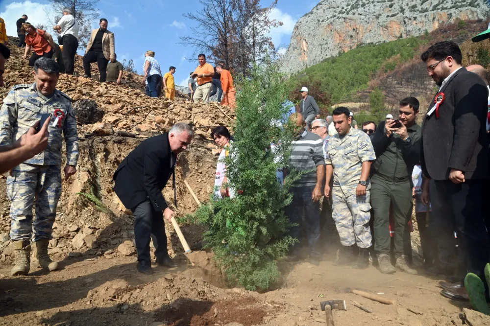 Anamur Orman İşletme Müdürlüğü koordinesinde Korucuk Mahallesi’nde gerçekleştirilen etkinlikte, geçtiğimiz Ağustos ayında yangın nedeniyle zarar gören alanlarda yeniden ağaçlandırma çalışmaları yapıldı. Cumhurbaşkanlığı’nın 6 Kasım 2019 tarihli genelgesiyle başlatılan “11 Kasım Milli Ağaçlandırma Günü” kapsamında bu yıl da Türkiye’nin dört bir yanında milyonlarca fidan toprakla buluştu. “Geleceğe Nefes” kampanyası çerçevesinde Anamur’da düzenlenen etkinlikte, doğa sevgisiyle bir araya gelen yüzlerce vatandaş, öğrenciler ve kurum temsilcileri geleceğe yeşil bir miras bırakmak için seferber oldu. Anamur Kaymakamı Kemal Duru, Korucuk Mahallesi’nde düzenlenen “Geleceğe Nefes” kampanyasında vatandaşlarla birlikte fidan dikti. Yangından etkilenen bölge yeniden yeşeriyor.