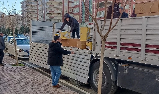 Şanlıurfa'ya ulaşan yardım tırındaki koliler depremzedelere dağıtılmaya başlanacak.